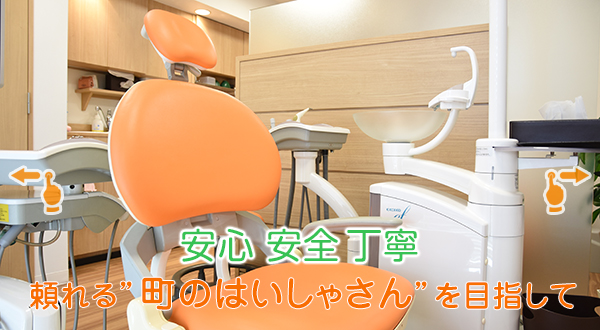 当院は地域の方々のお口の健康管理を安心して任せていただける"町のはいしゃさん"を目指していきます。その為に当院ではしっかりとお話を伺い、現在のお口の状況をご説明し、治療の流れを事前に詳しくお話しさせていただきます。お困りごとがございましたら、ぜひ当院にご相談ください。